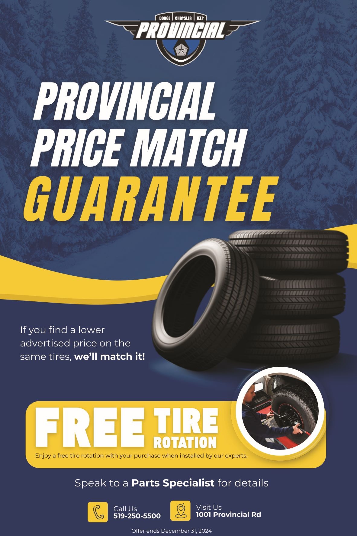 Buy 3 Tires, Get The 4th Free OR Tire Price Match Guarantee.